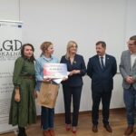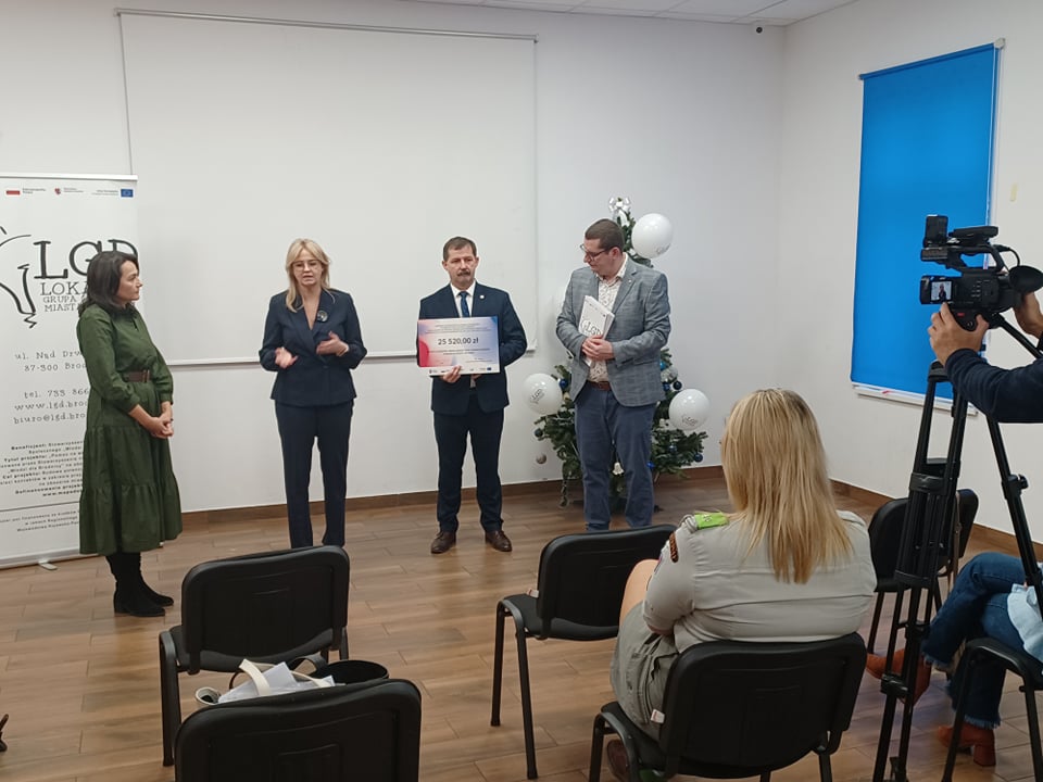 Pani Aneta Jędrzejewska Członek Zarządu Województwa Kujawsko-Pomorskiego oraz Pan Paweł Zgórzyński Radny Województwa uczestniczyli w uroczystości wręczenia Grantobiorcom czeków na realizację przedsięwzięć dofinansowanych z Europejskiego Funduszu Społecznego w ramach Rozwoju Lokalnego Kierowanego przez Społeczność.