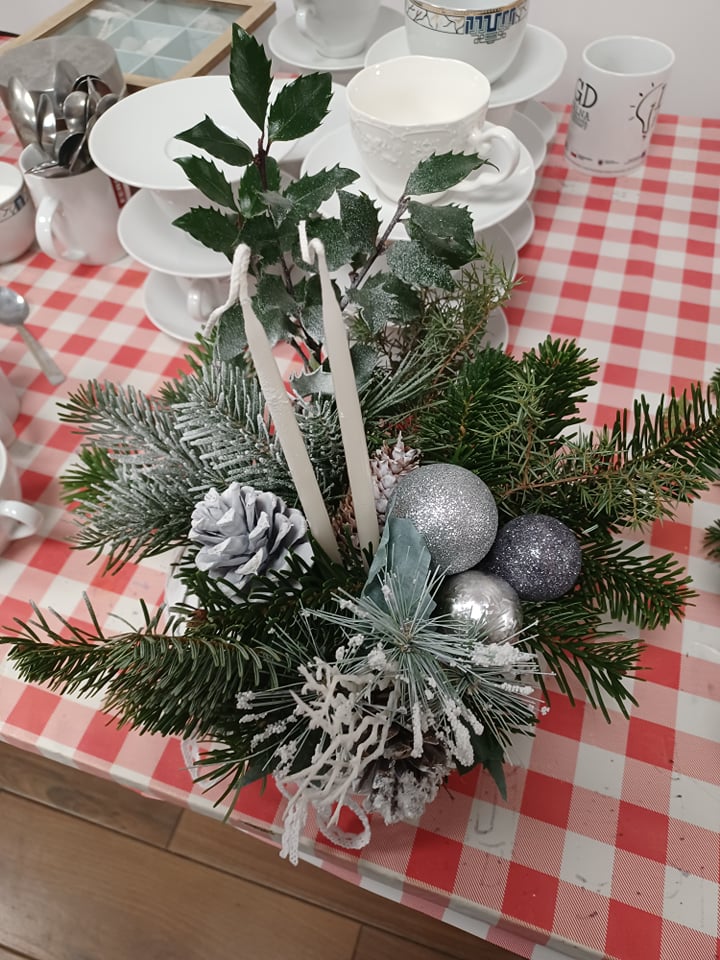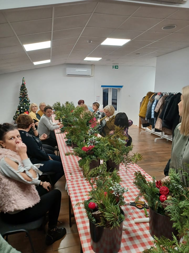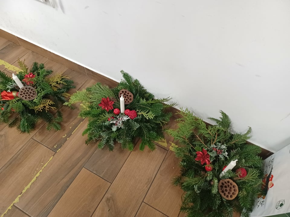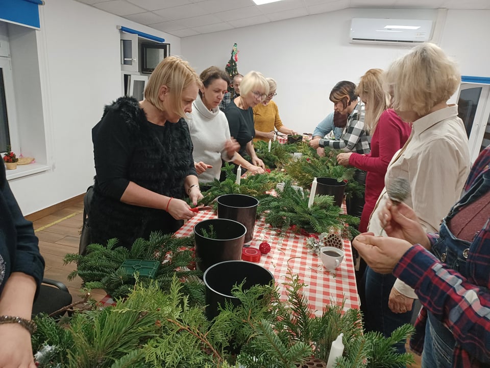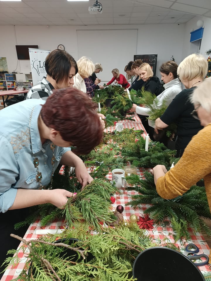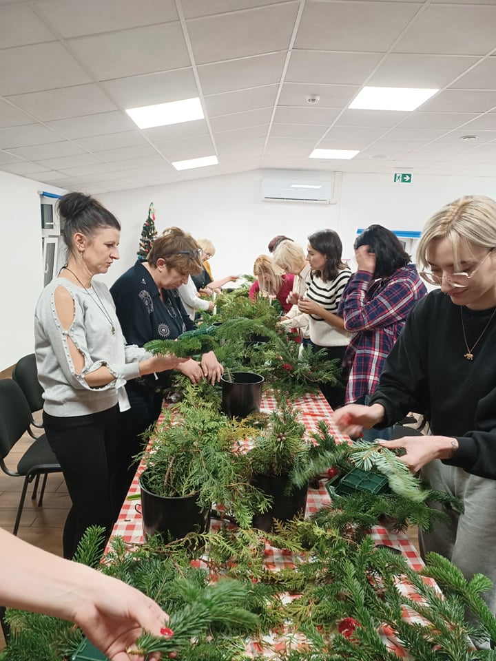 W ramach warsztatów 15 uczestniczek wykonało po dwa rodzaje stroików świątecznych, które będą dekoracją na wigilijnych stołach.